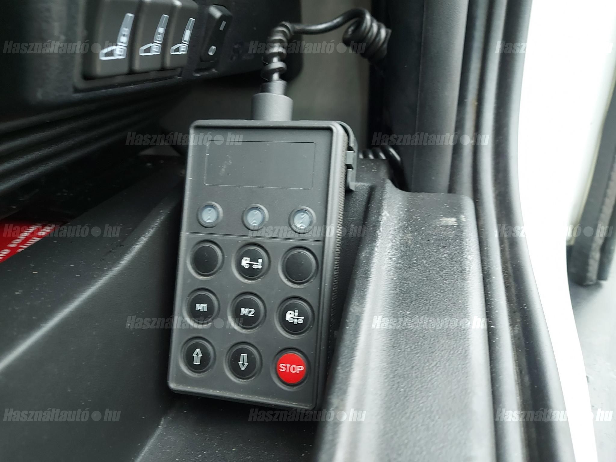 | Felszereltség: | Állítható kormány, CD-s autórádió, elektromos ablak, elektromos tükör, fedélzeti komputer, fűthető tükör, légfék, légrugó, légrugós ülés, manuális klíma, szervokormány, tempomat, tolató kamera, ülésmagasság állítás, azonnal elvihető. |