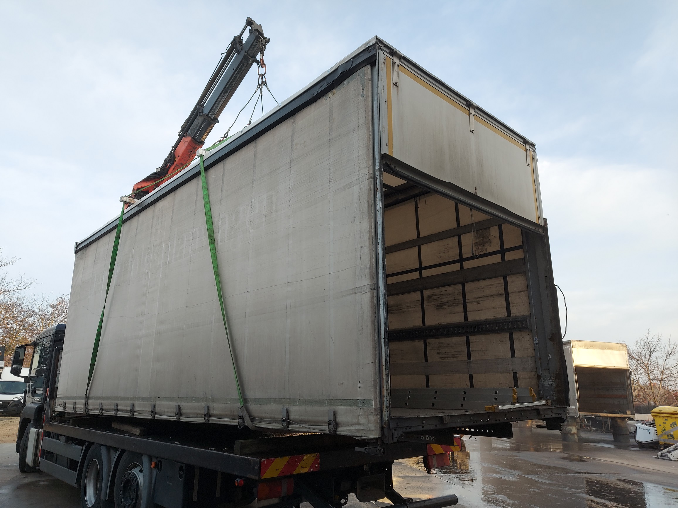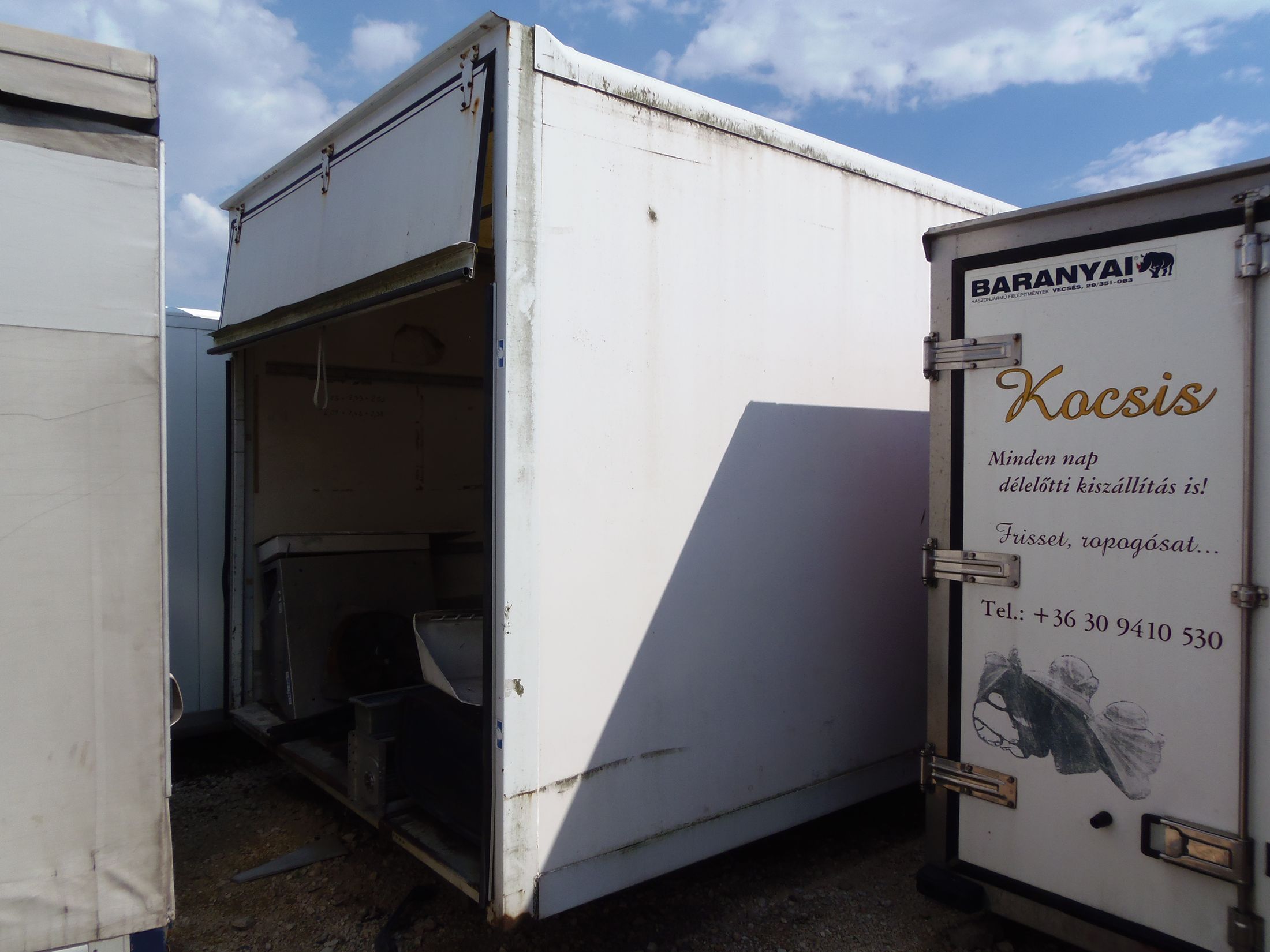 DOBOZ FELÉPÍTMÉNY, MÉRET: 6.13 x 2.53 x 2.50 m, BELSŐ MÉRET: 6.09 x 2.48 x 2.38 m. IGÉNY SZERINT HÁTUL DUPLA AJTÓVAL VAGY A HOZZÁ TARTOZÓ EMELŐHÁTFALLAL, VALAMINT FELSZERELVE IS!