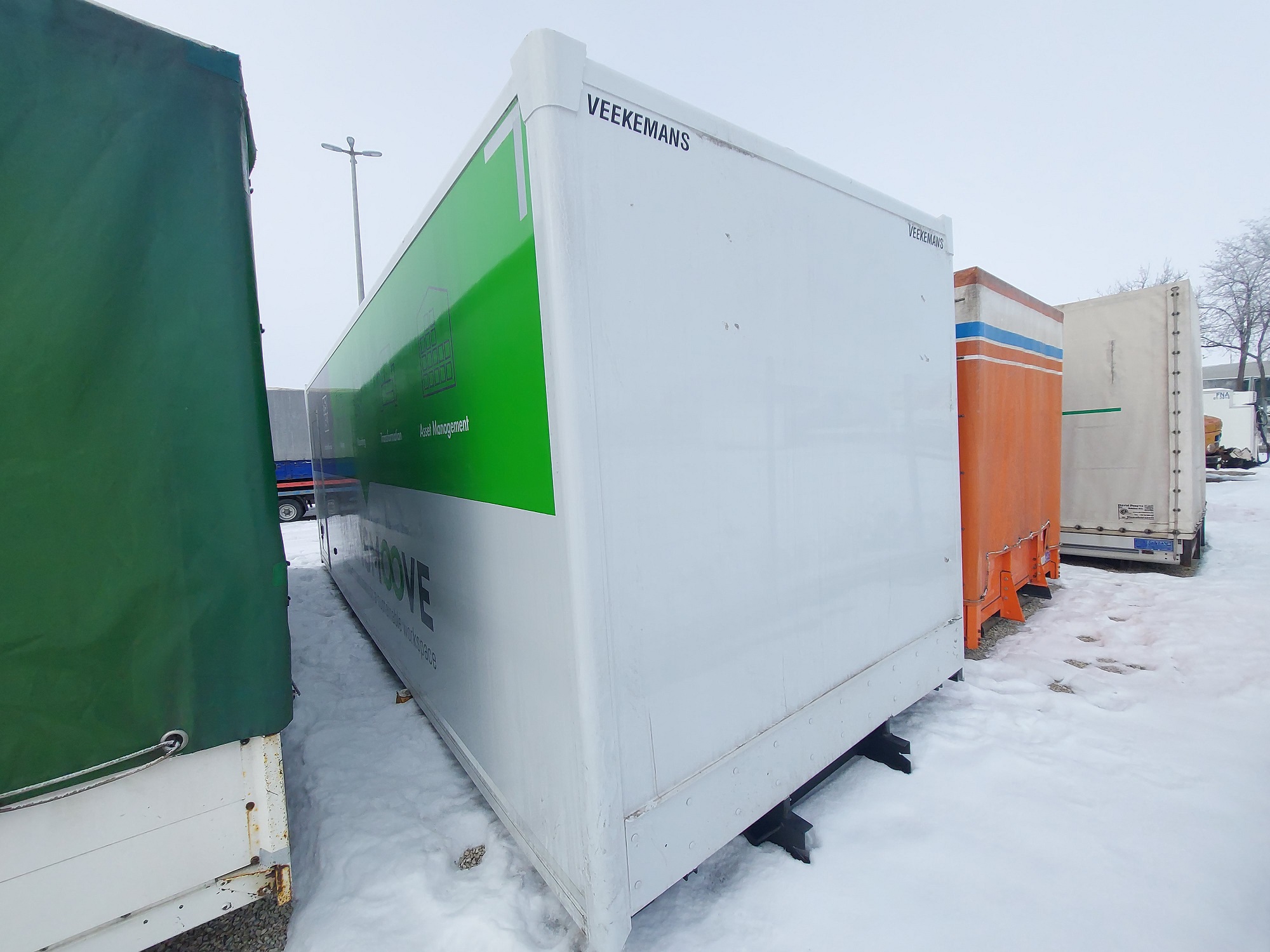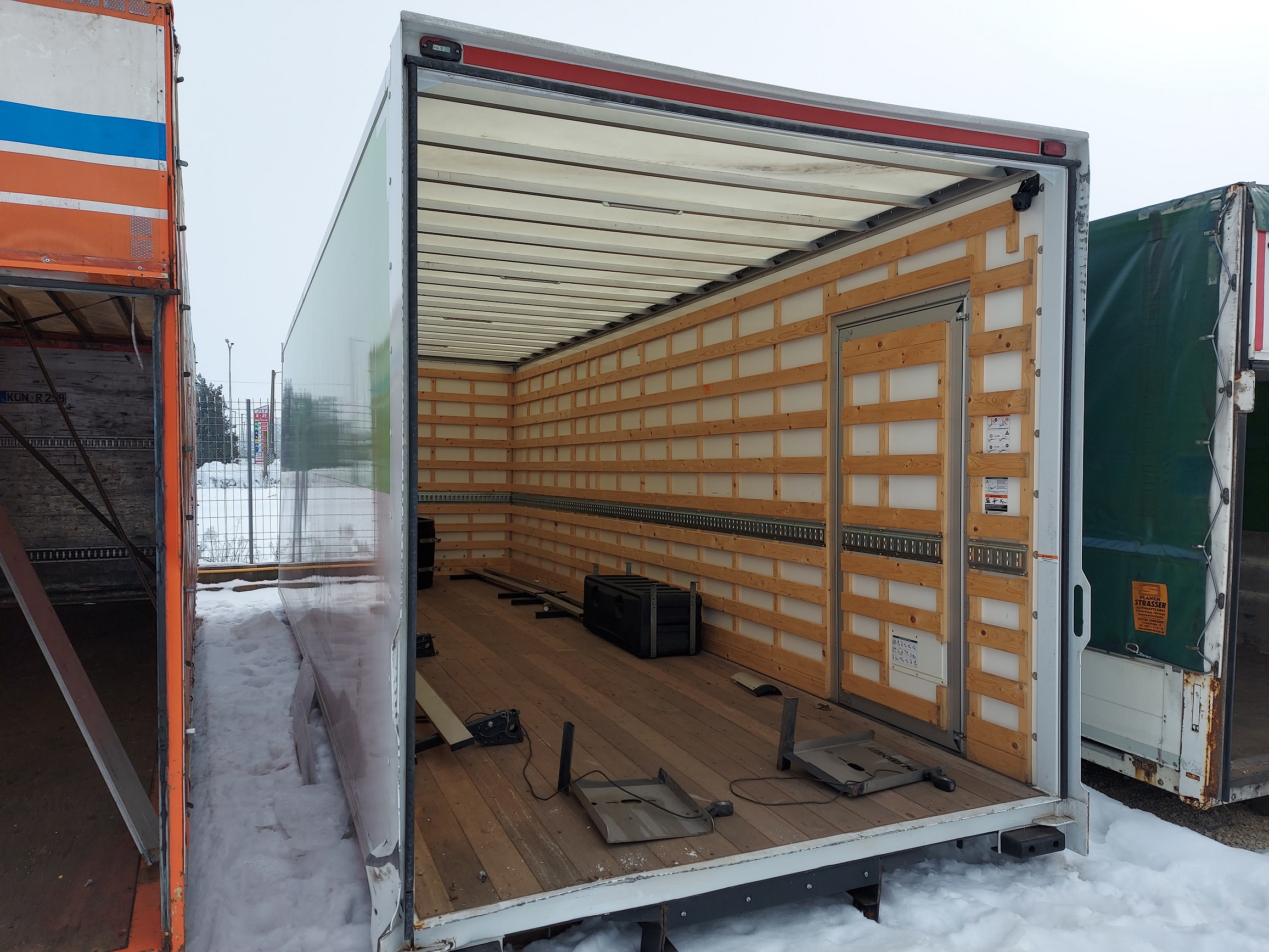 DOBOZ FELÉPÍTMÉNY HÁTÚL OLDALAJTÓVAL, KÜLSŐ MÉRET: 7.86 x 2.55 x 2.62 m, BELSŐ MÉRETE: 7.73 x 2.42 x 2.45 m. IGÉNY SZERINT FELSZERELVE IS!