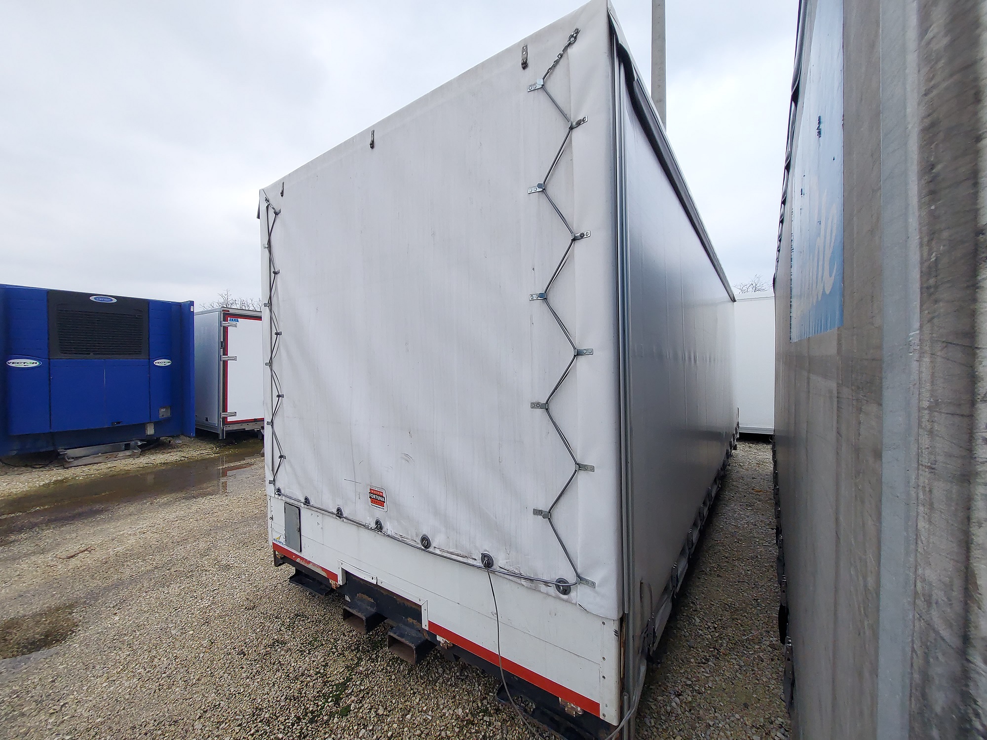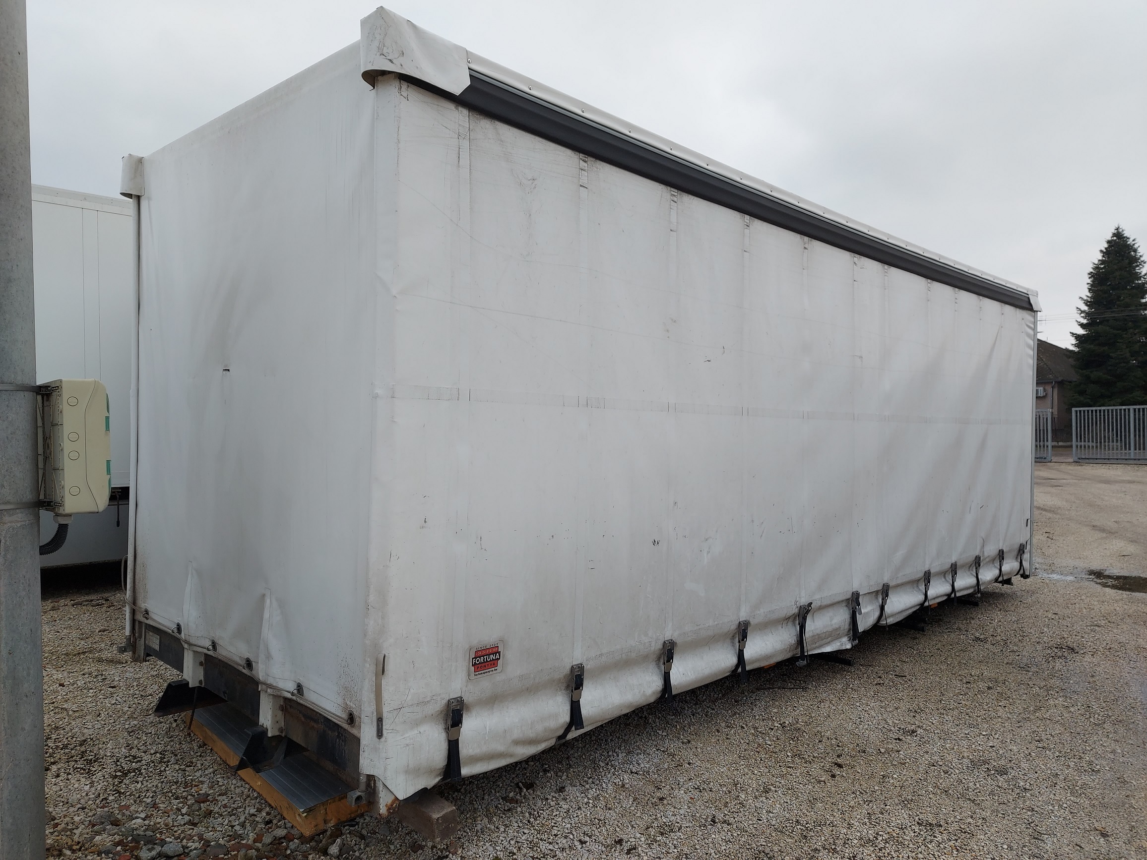 KÉTOLDALI FÜGGÖNYPONYVÁS PLATÓ FELÉPÍTMÉNY, KÜLSŐ MÉRET: 7.30 X 2.55 X 2.72 m, BELSŐ MÉRET: 7.20 x 2.48 x 2.50 m, HOMLOKFAL MAGASSÁG: 1400 mm, SEGÉDALVÁZ SZÉLESSÉGE: 905 mm. IGÉNY SZERINT FELSZERELVE IS!