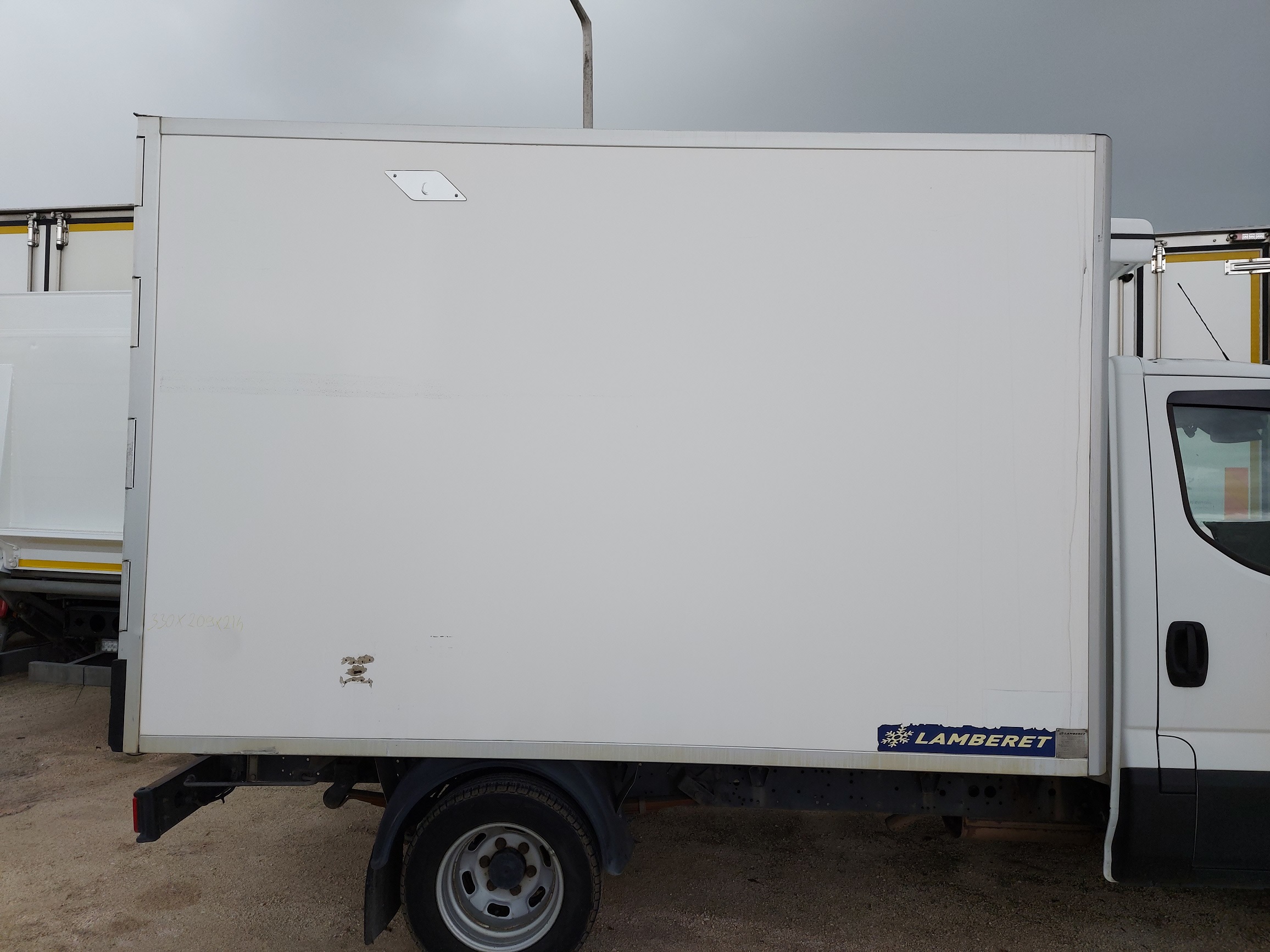 HŰTŐS-HÚSPÁLYÁS DOBOZ FELÉPÍTMÉNY, KÜLSŐ MÉRET 3.30 x 2.09 x 2.14m, BELSŐ MÉRET: 3.07 X 1.90 X 1.94 m, FALVASTAGSÁG: 95 mm, SEGÉDALVÁZ SZÉLESSÉGE: 860 mm, CARRIER VIENTO 300 HŰTŐAGGREGÁTTAL (KÖTÚTI ÜZEMMÓD). IGÉNY SZERINT BEÜZEMELVE, ÉS FELSZERELVE!