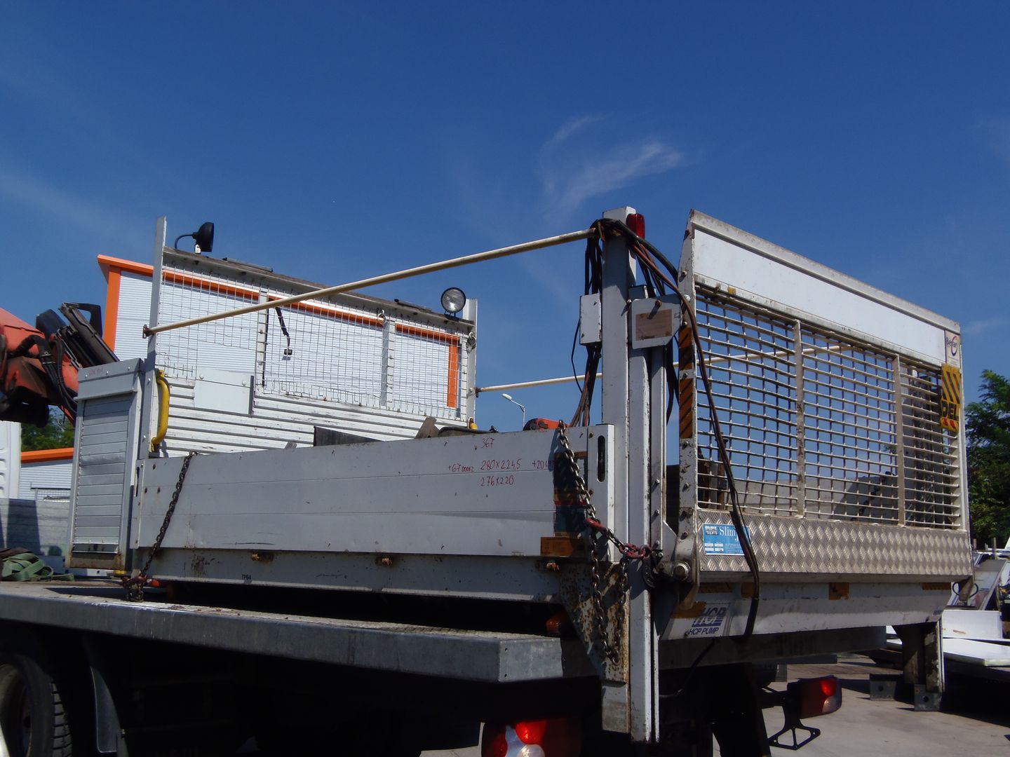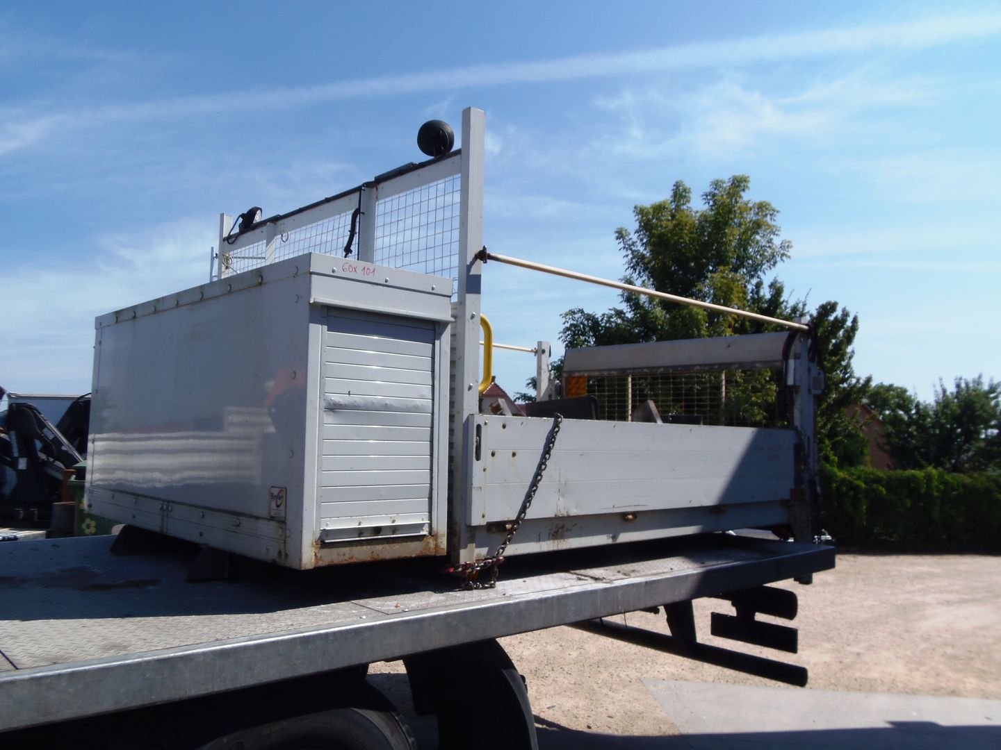 PLATÓ FELÉPÍTMÉNY, KÜLSŐ MÉRET: 2.80 x 2.24 m, BELSŐ MÉRET: 2.76 x 2.20 m) ELŐL SZERSZÁM TÁROLÓVAL (KÜLSŐ MÉRET: 0,60 X 1,01 m), DEL 500 KG TEHERBÍRÁSÚ EMELŐLIFTTEL. IGÉNY SZERINT FELSZERELVE IS!